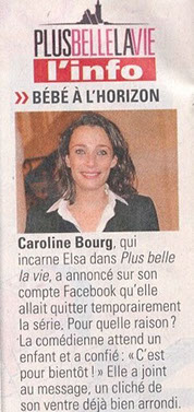 AOUT 2016 : Caroline annonce quitter temporairement PBLV... et ce pour la plus belle des raisons... L'actrice est enceinte de son premier enfant. Un bébé "surprise" prévu pour début octobre... Fille ou garçon, les paris sont ouverts !